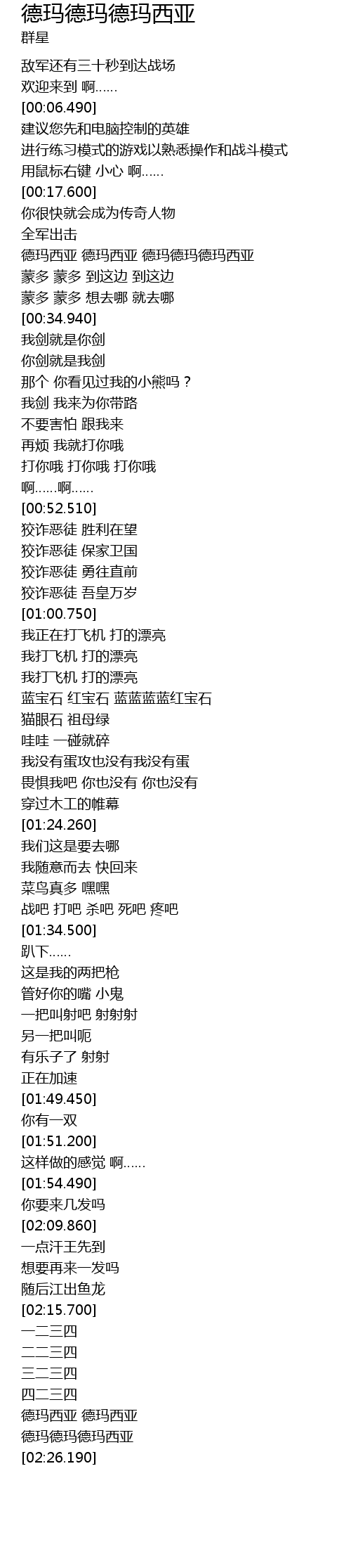 | [02:22.070] | 德玛德玛德玛西亚 |