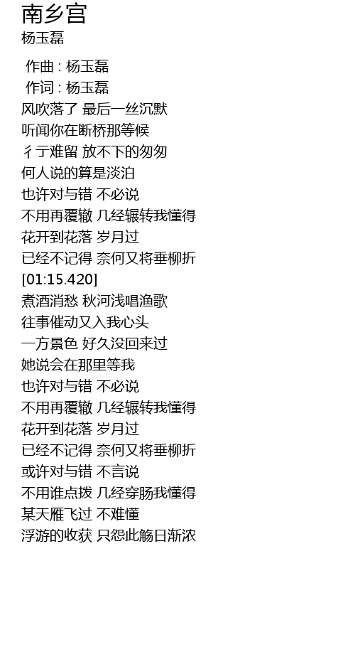 | [02:46.420] | mou tian yan fei guo bu nan dong |