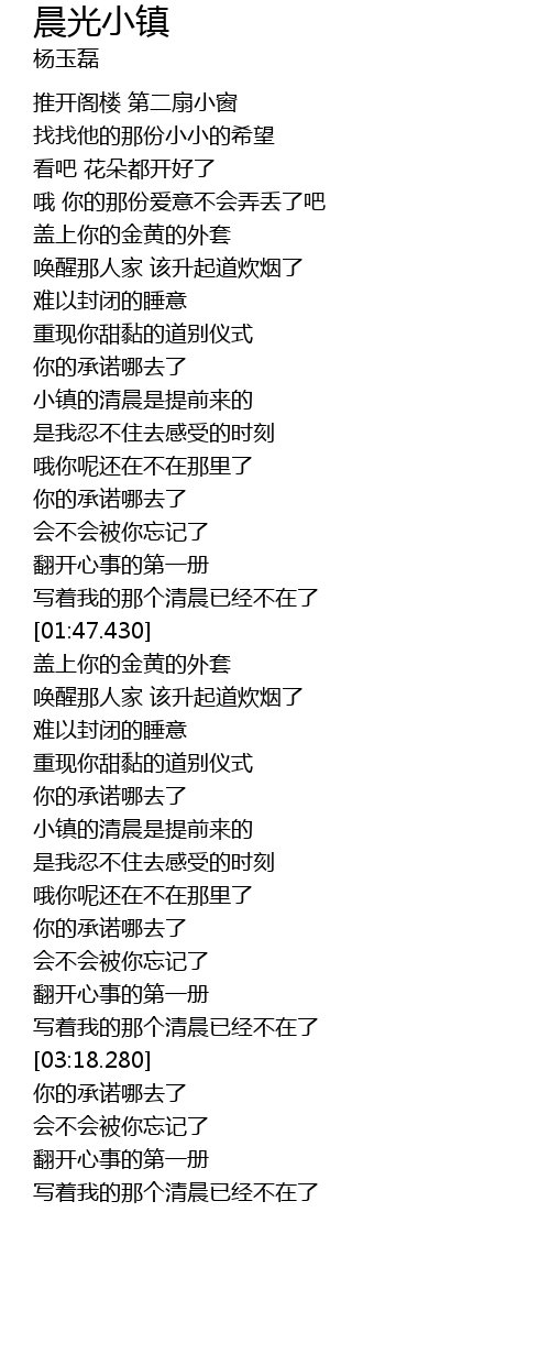 | [01:40.910] | 写着我的那个清晨已经不在了 |