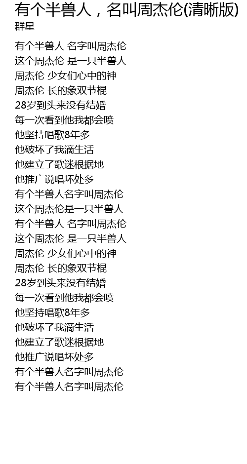 | [00:06.500] | 这个周杰伦 是一只半兽人 |