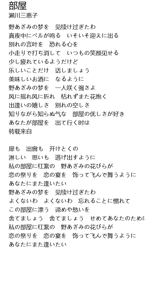 | 私の部屋に红紫の 野あざみの花びらが | |