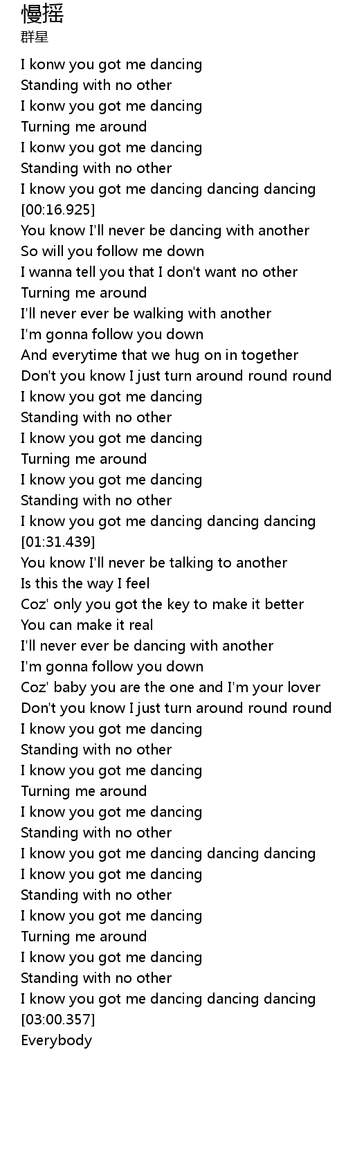 | [00:04.364] | I konw you got me dancing |