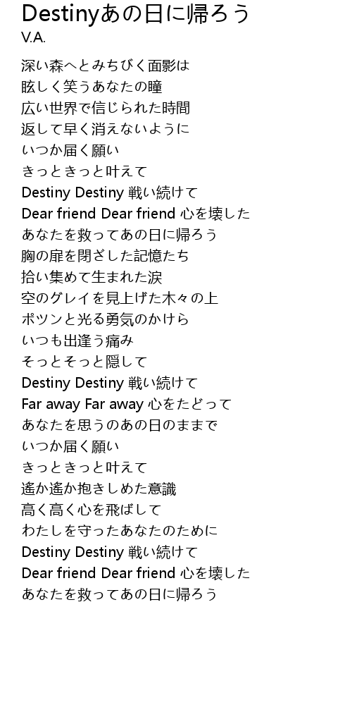 | [02:59.633] | Destiny Destiny 戦い続けて |