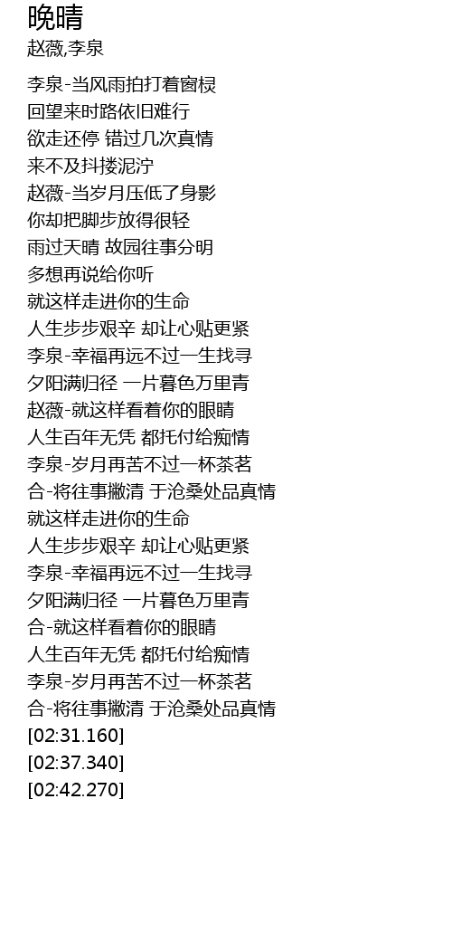 | [02:18.920] | 合-将往事撇清 于沧桑处品真情 |