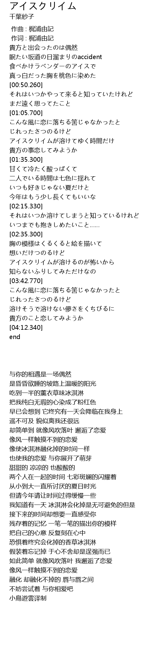 | [03:29.750] | アイスクリイムが溶けるのが怖いから |