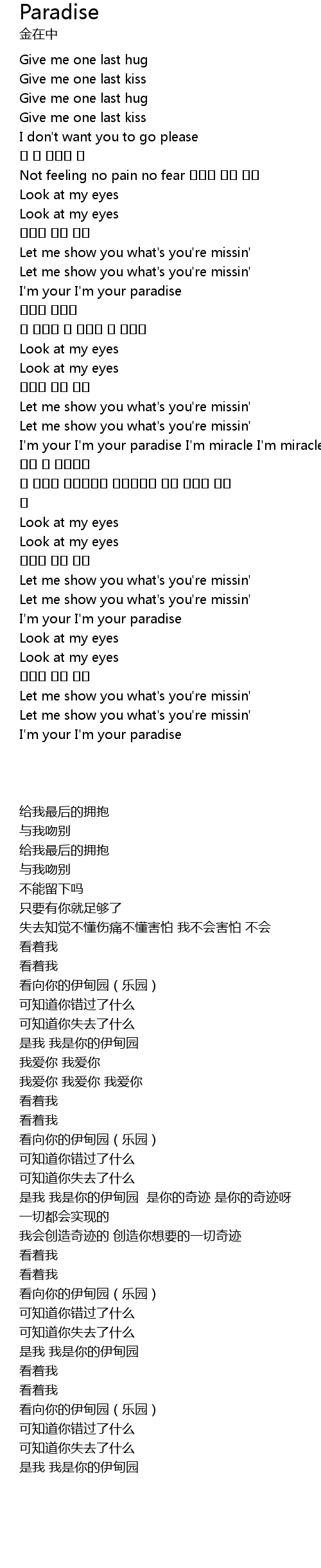 | [02:20.700] | I'm your I'm your paradise I'm miracle I'm miracle |
