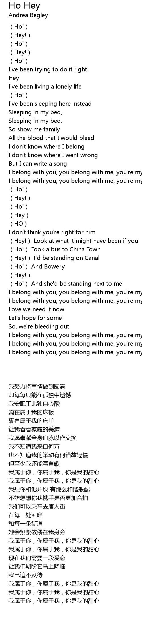 | [01:42.260] | I belong with you, you belong with me, you' re my sweetheart |