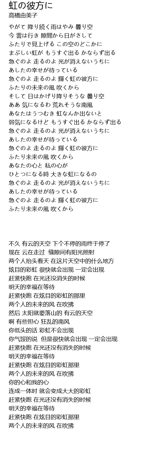 急ぐのよ 走るのよ 輝く虹の彼方に |