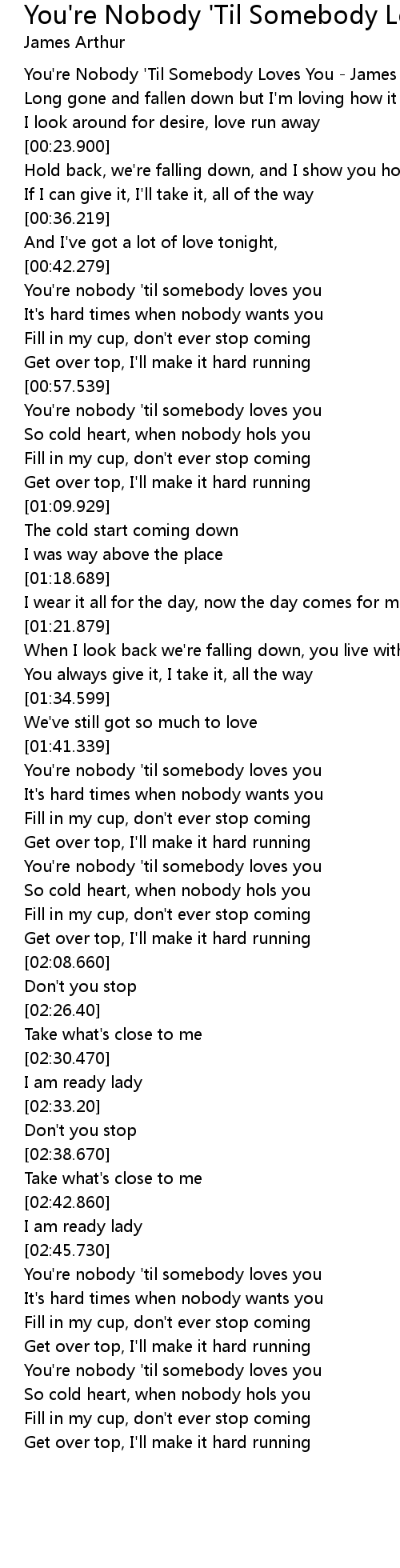 [00:02.330] You're Nobody 'Til Somebody Loves You - James Arthur
