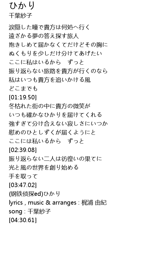 | [03:49.02] | (钢铁侦探ed)ひかり |