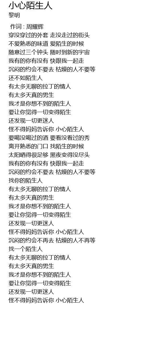 | [02:30.800] | guài bù dé mā mā gào sù nǐ xiǎo xīn mò shēng rén |