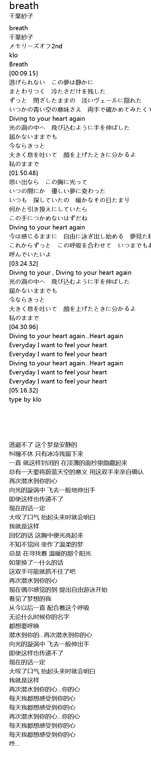 | [03:45.33] | Diving to your , Diving to your heart again |