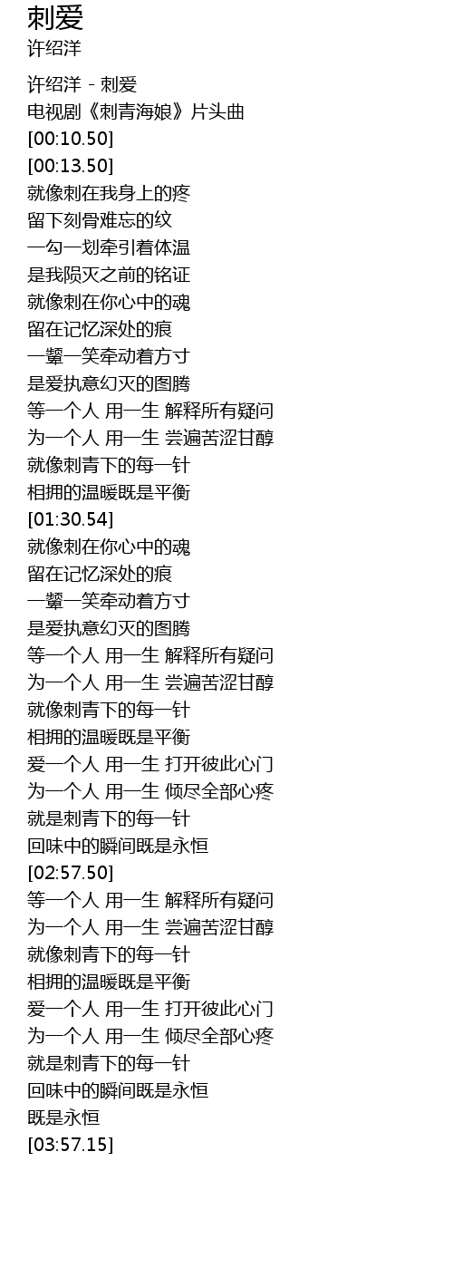 | [00:00.00] | 许绍洋 - 刺爱 |