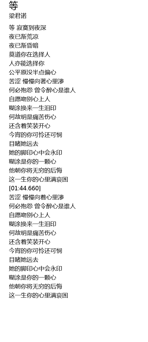| [01:31.520] | 糊涂是你的一颗心 |