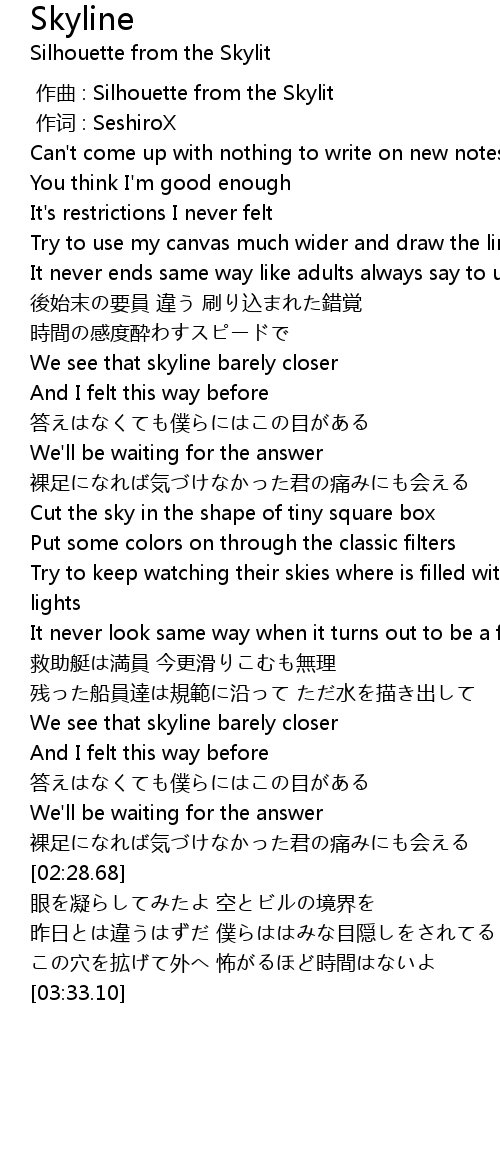 | [00:00.00] | zuo qu : Silhouette from the Skylit |