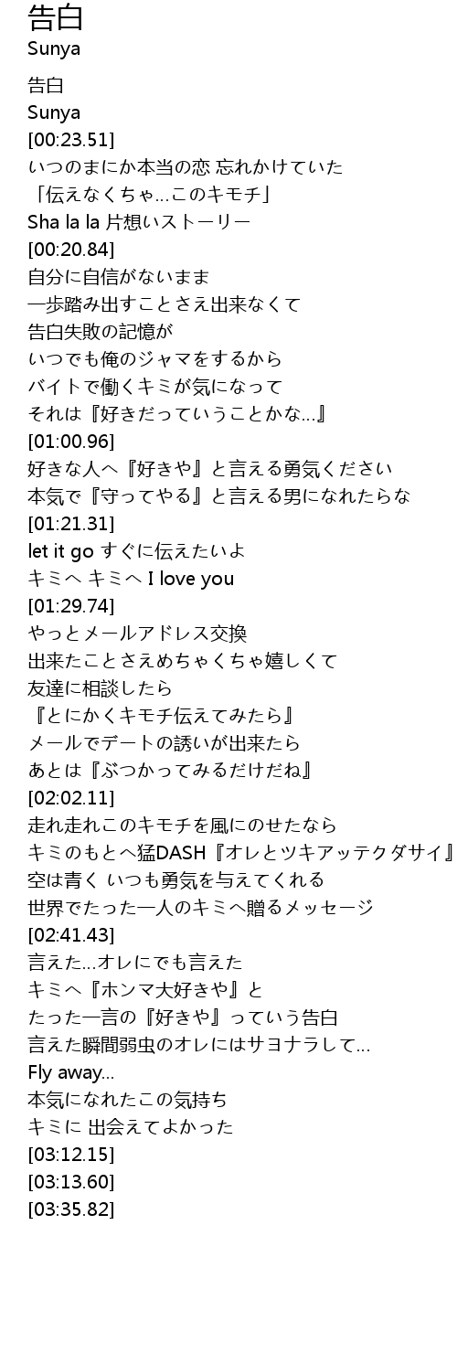 | [01:02.07] | 好きな人へ『好きや』と言える勇気ください |