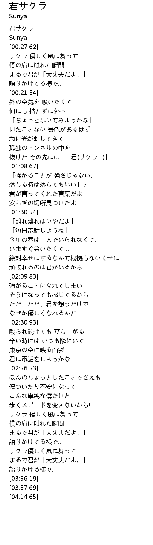 | [01:02.37] | 抜けた その先には…「君(サクラ…)」 |