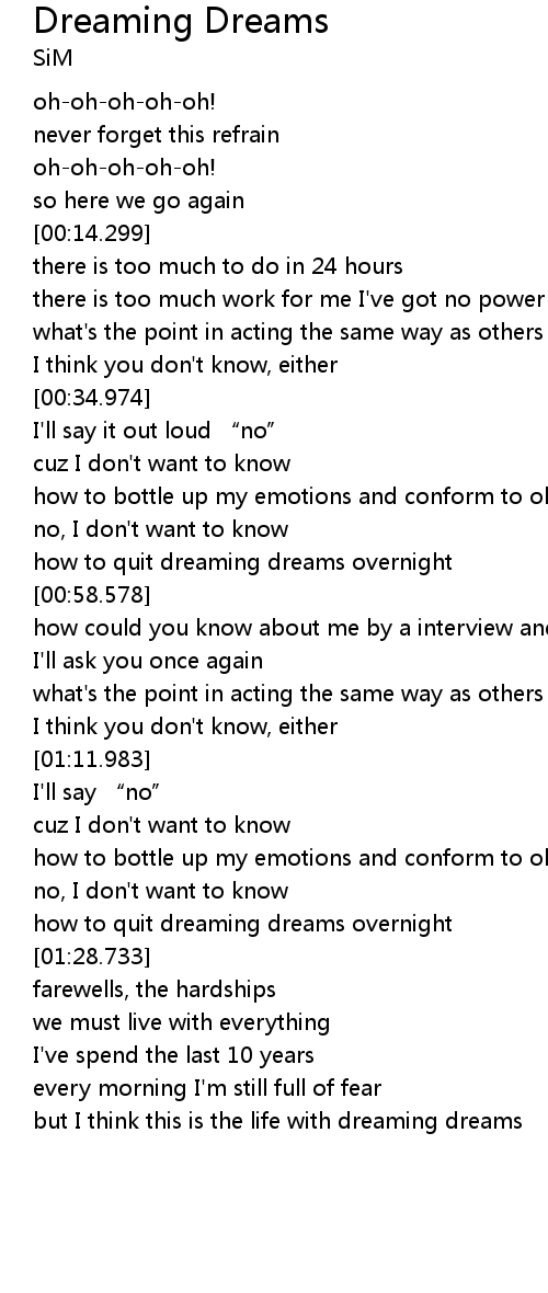 | [01:24.803] | how to quit dreaming dreams overnight |