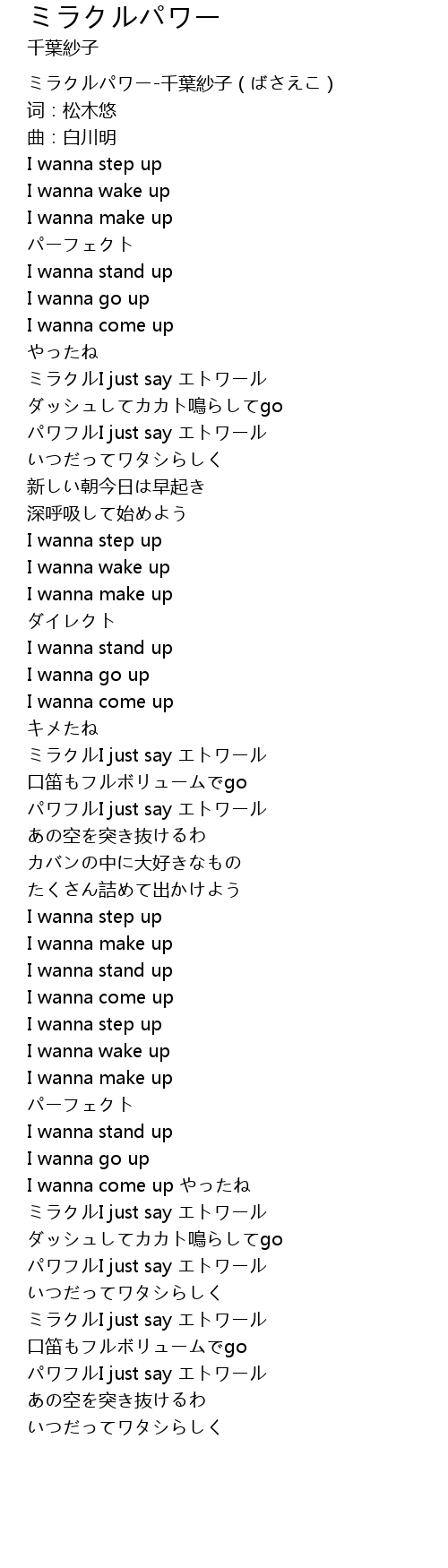 [00:00.00] ミラクルパワー-千葉紗子(ばさえこ)