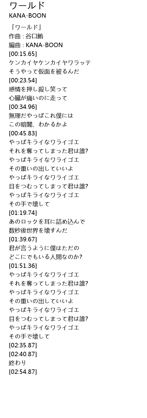 | [00:00.65] | 「ワールド」 |