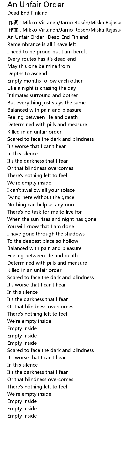| [00:00.751] | An Unfair Order -Dead End Finland |