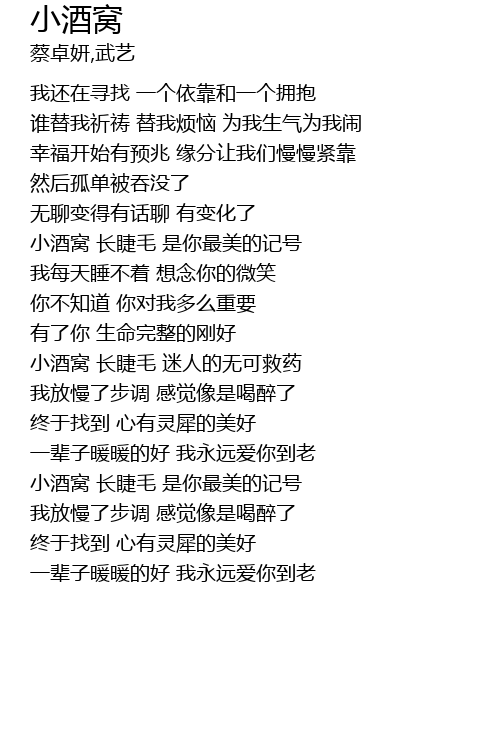 | [00:44.39] | xiǎo jiǔ wō zhǎng jié máo shì nǐ zuì měi dí jì hào |