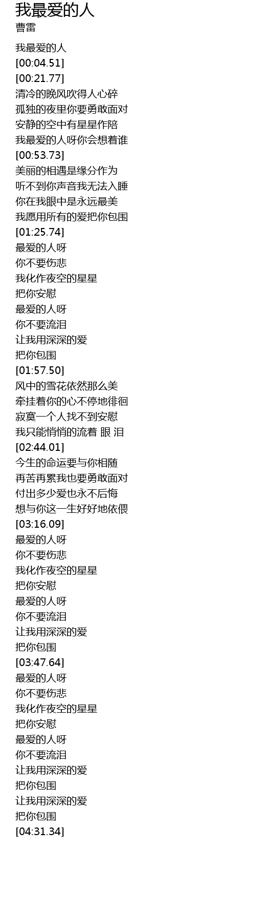 | [00:45.76] | 我最爱的人呀你会想着谁 |