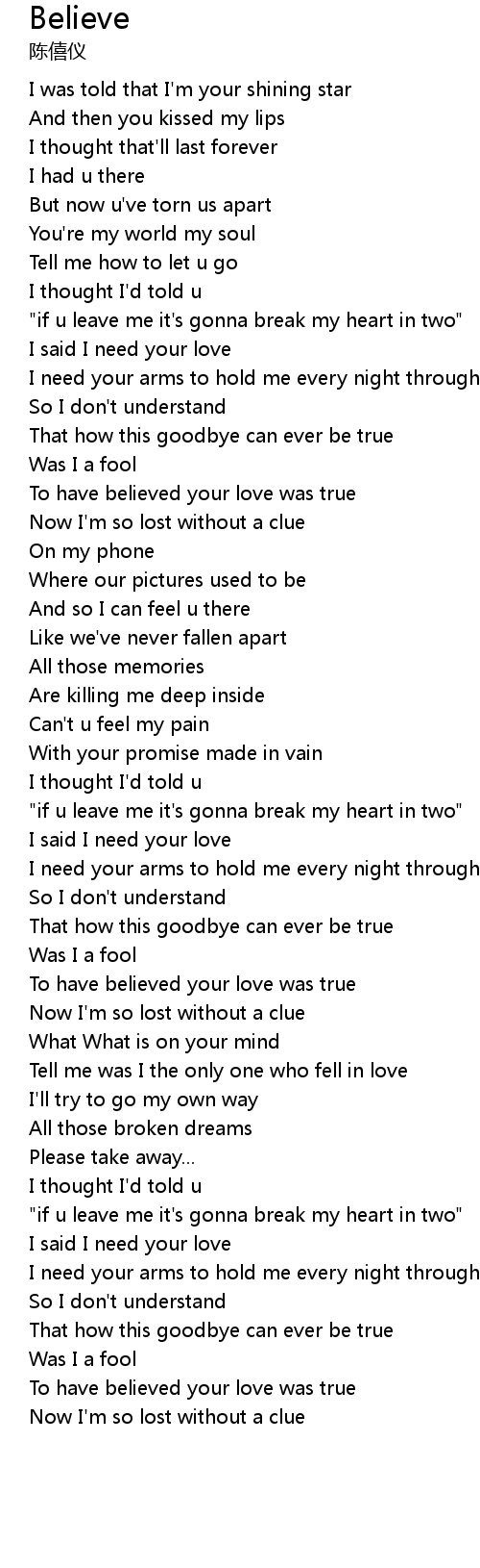 | [02:52.82] | "if u leave me it's gonna break my heart in two" |