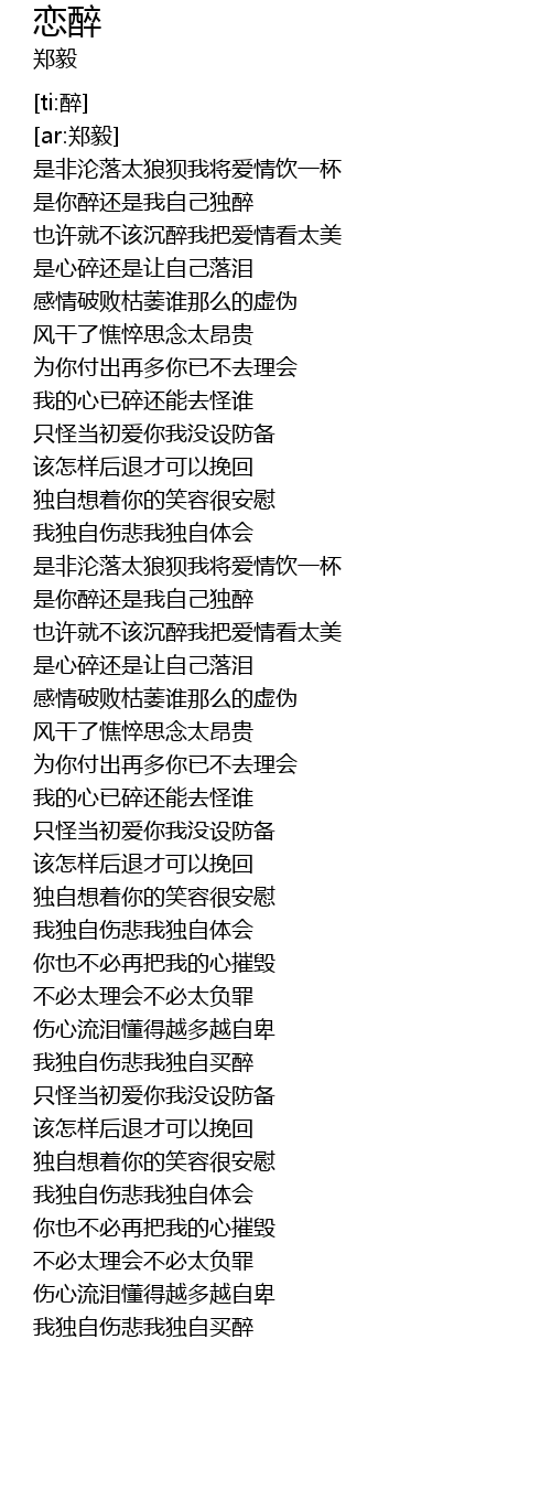 | [03:56.508] | 我独自伤悲我独自买醉 |