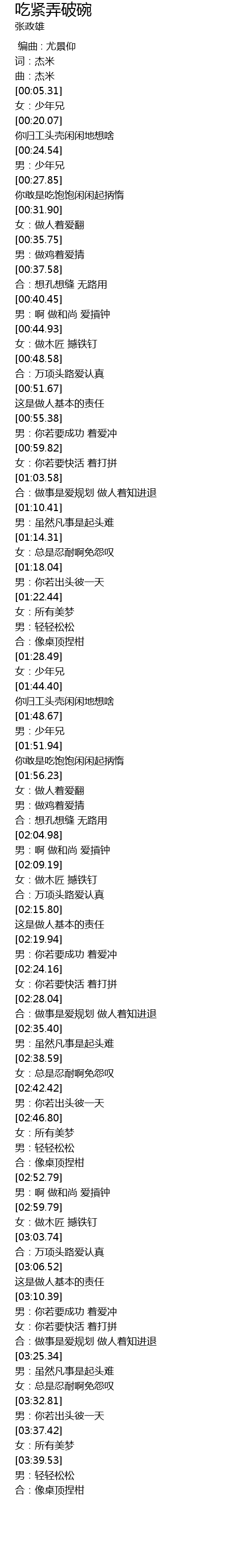 | [02:06.00] | 男:啊 做和尚 爱摃钟 |