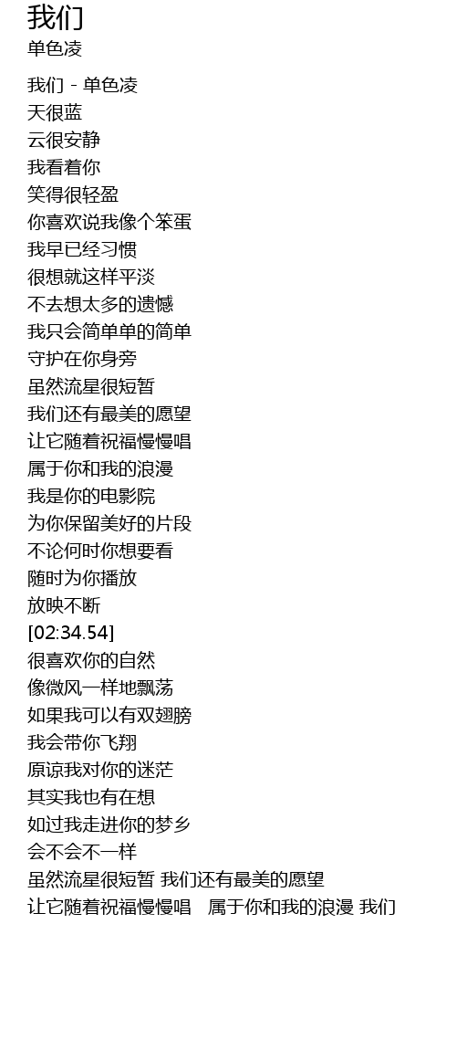 | [03:55.81] | 虽然流星很短暂 我们还有最美的愿望 让它随着祝福慢慢唱 属于你和我的浪漫 我们 |