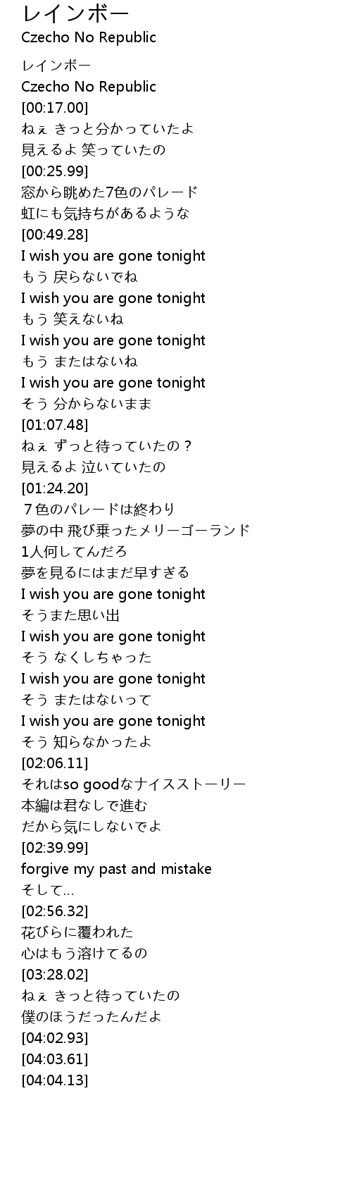 | [00:34.69] | 窓から眺めた7色のパレード |