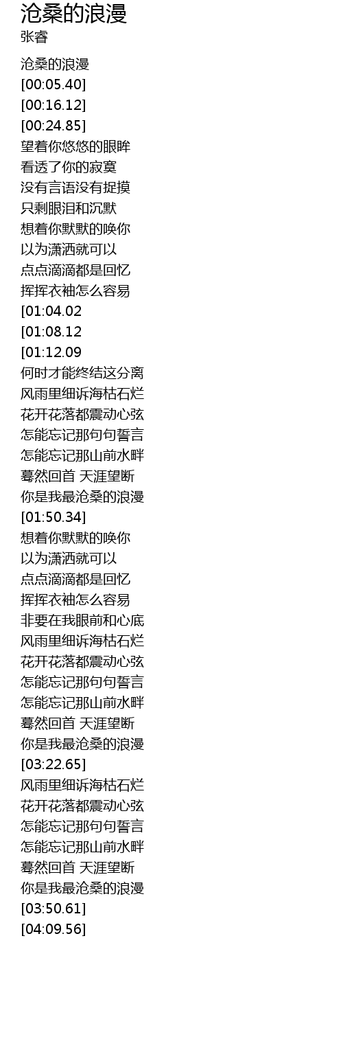 | [03:18.16] | nǐ shì wǒ zuì cāng sāng de làng màn |
