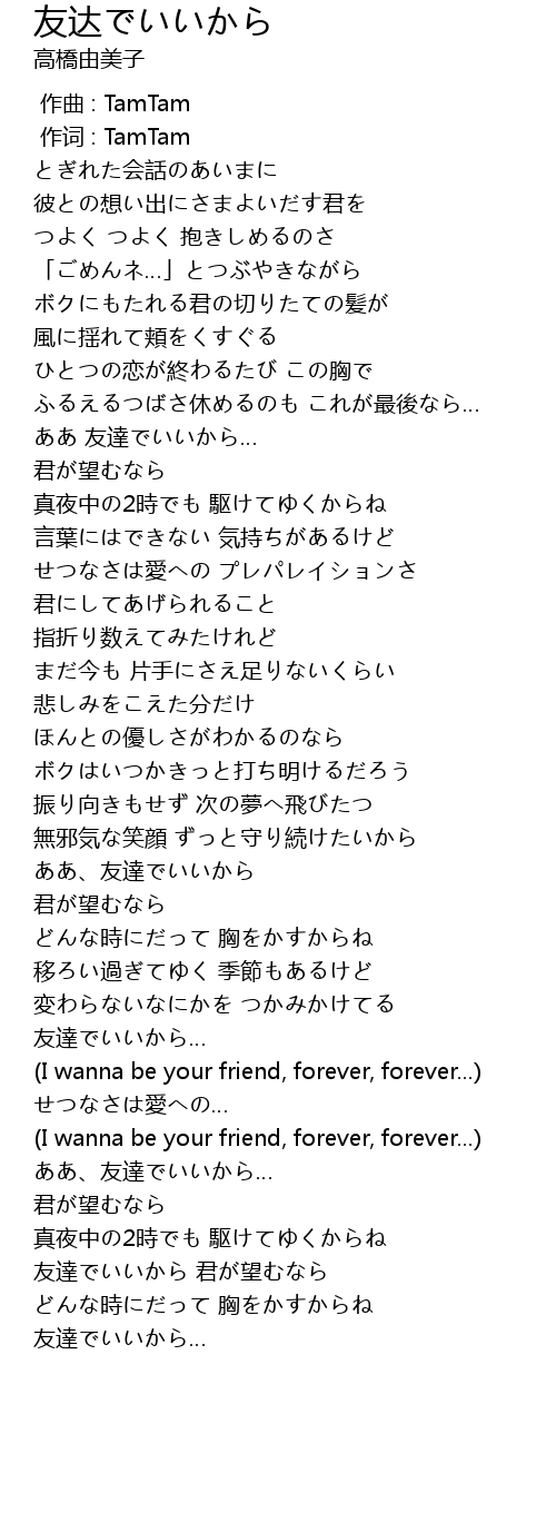 | [03:21.96] | (I wanna be your friend, forever, forever...) |