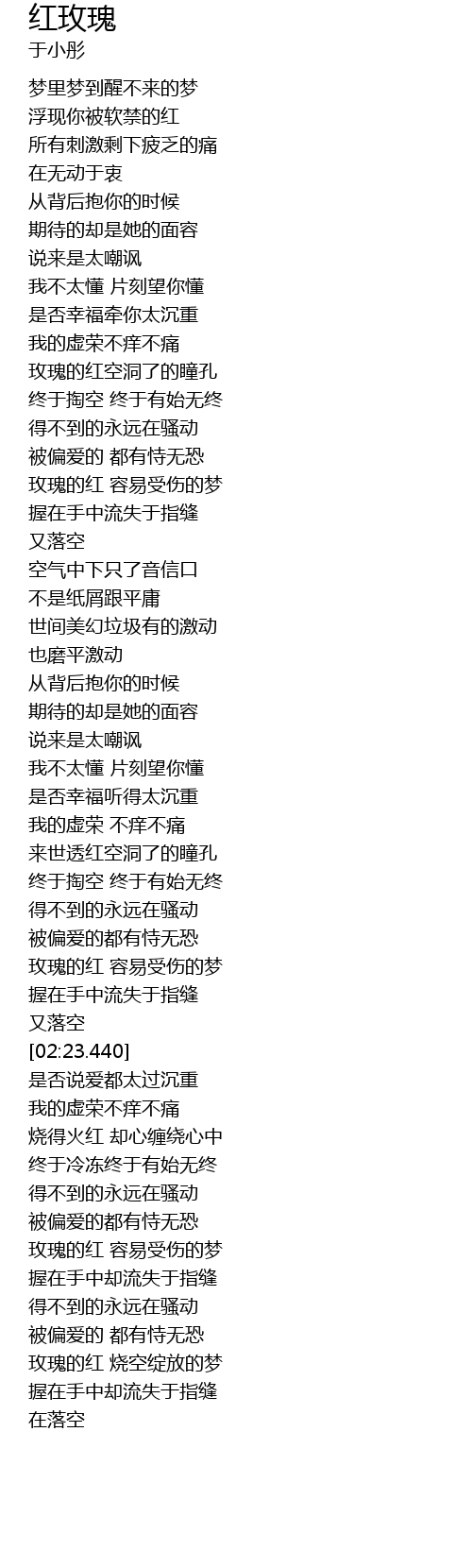 | [02:57.300] | 玫瑰的红 容易受伤的梦 |
