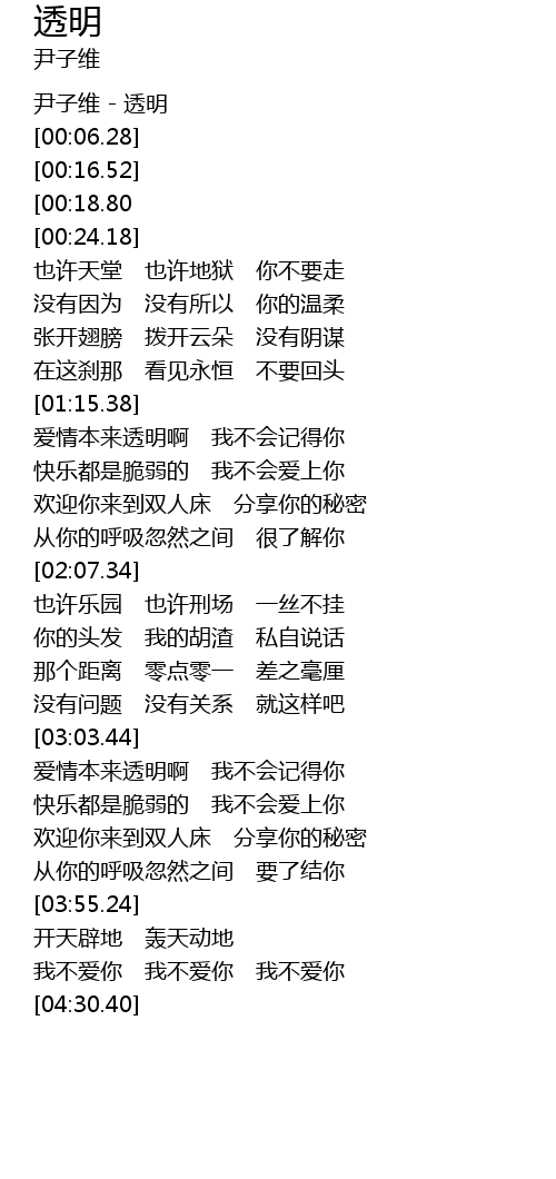 | [01:20.79] | 爱情本来透明啊 我不会记得你 |