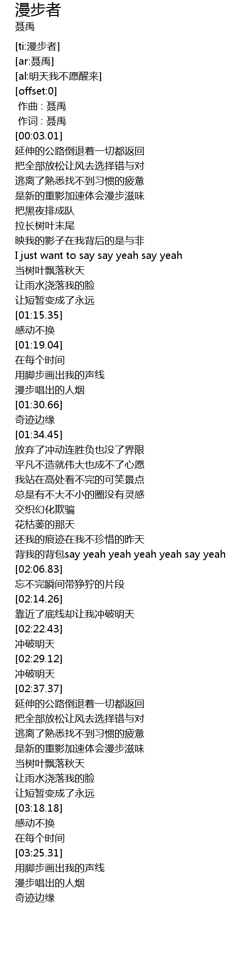 | [03:04.74] | 是新的重影加速体会漫步滋味 |