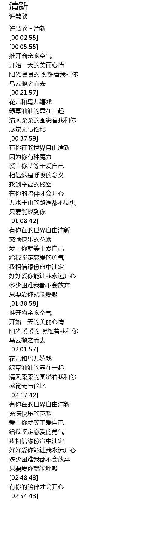 | [00:00.55] | xǔ huì xīn qīng xīn |