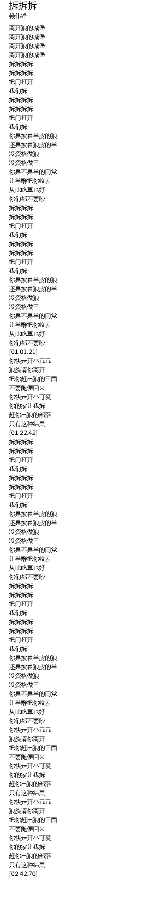 | [02:25.57] | láng zú qǐng nǐ lí kāi |