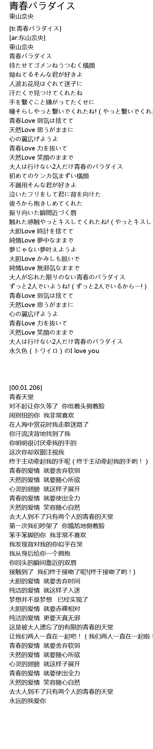 | [03:38.937] | 大人は行けない2人だけ青春のパラダイス |