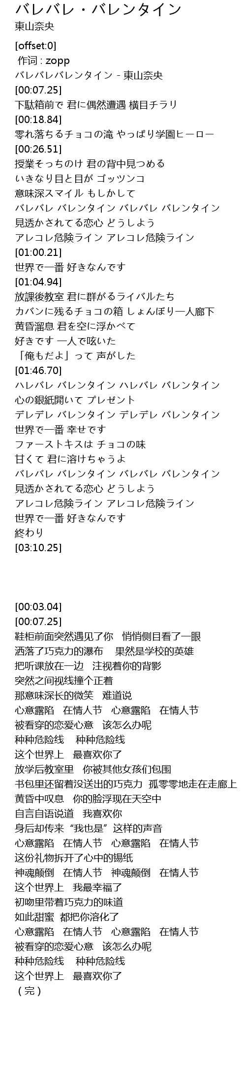 | [00:43.06] | バレバレ バレンタイン バレバレ バレンタイン |