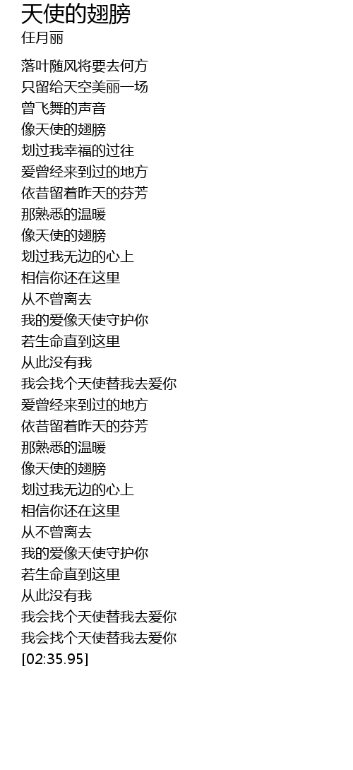 | [02:21.29] | 我会找个天使替我去爱你 |