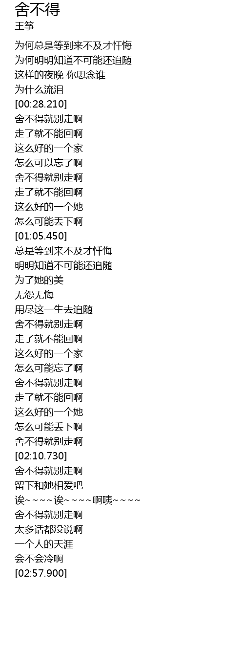 | [02:22.210] | shě bù dé jiù bié zǒu a |