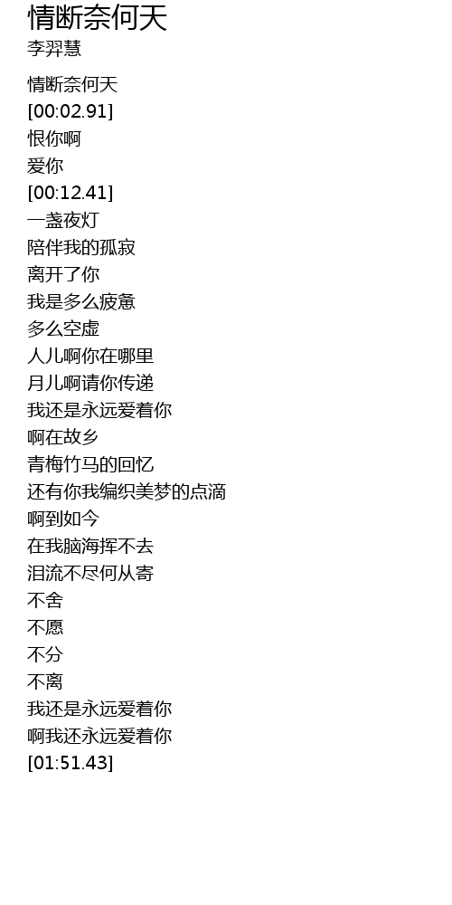 | [00:59.33] | wǒ hái shì yǒng yuǎn ài zhe nǐ |
