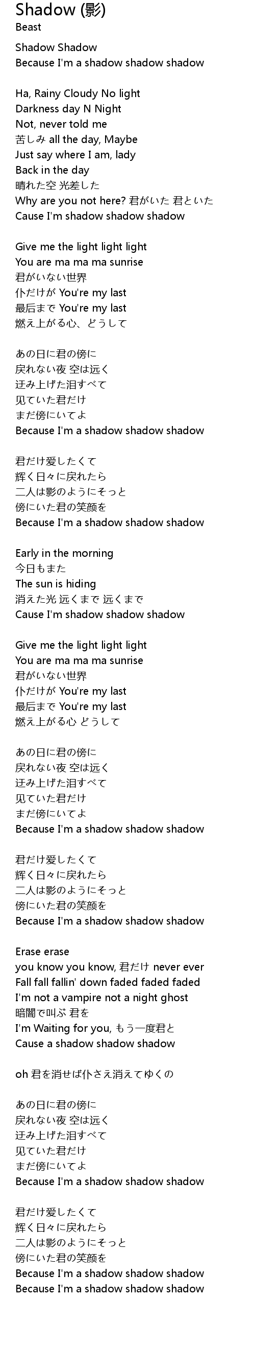 | Because I' m a shadow shadow shadow |