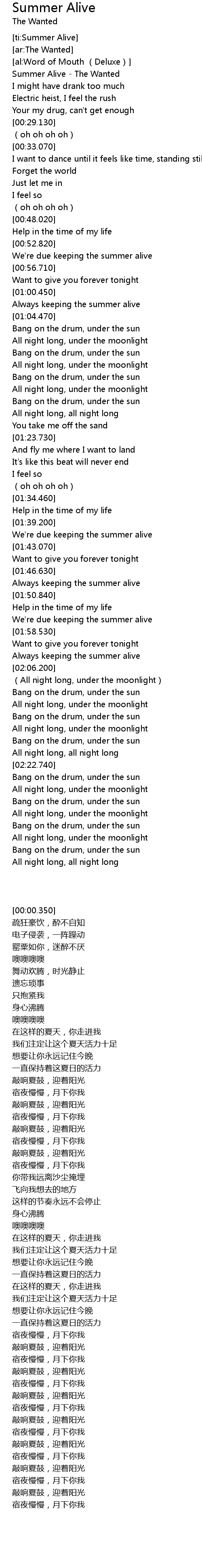 | [00:00.350] | Summer Alive - The Wanted |