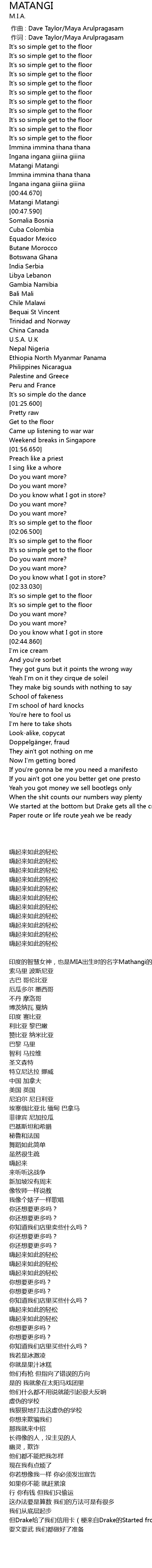 | [00:01.00] | zuò cí : Dave Taylor Maya Arulpragasam |