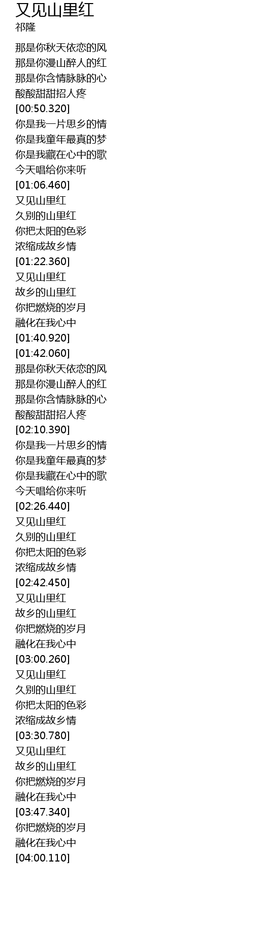 | [03:15.430] | yòu jiàn shān lǐ hóng |