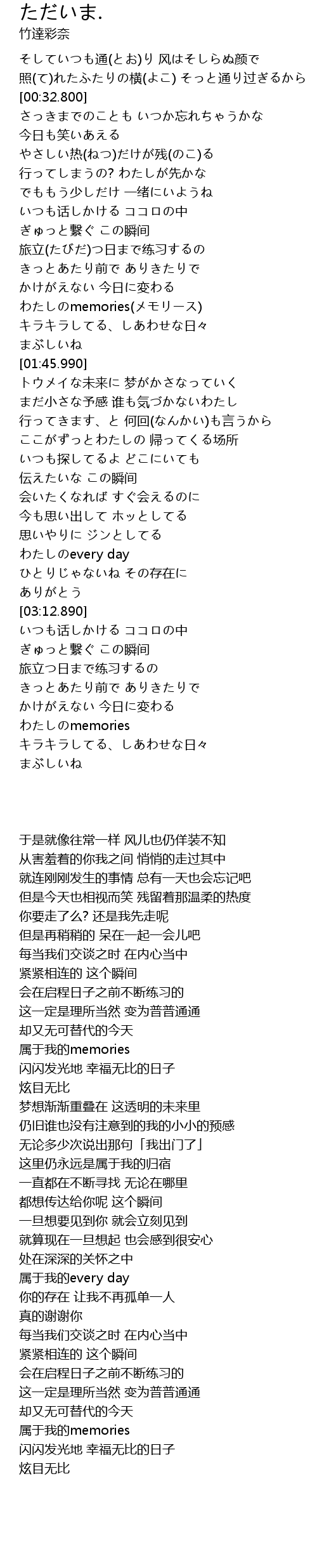 | [03:58.600] | キラキラしてる、しあわせな日々 |
