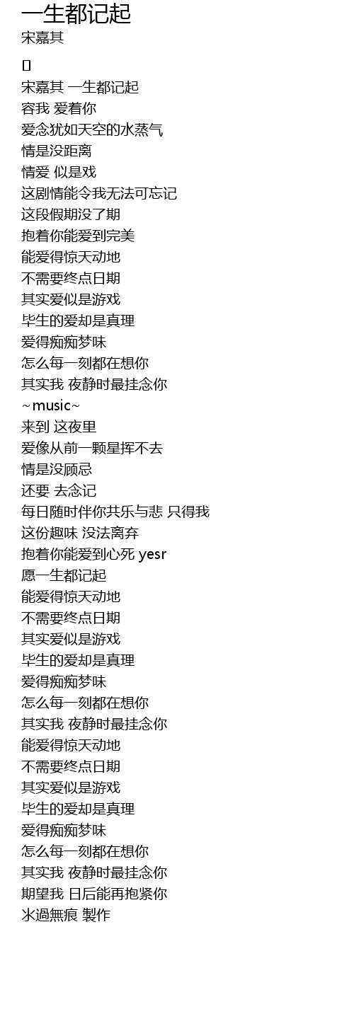 | [00:00.666] | 宋嘉其 一生都记起 |